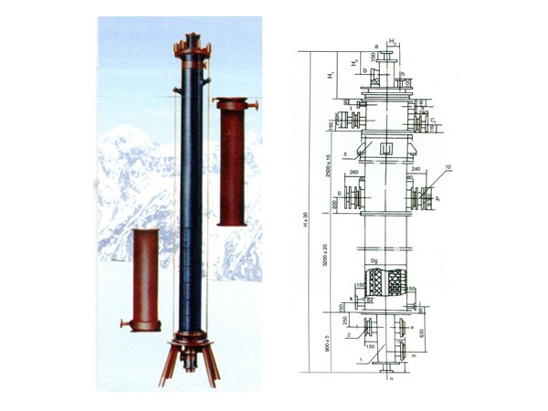 主要用于硫酸鉀生產系統,成功替代了進口設備。該設備要求頂部零部件耐溫540度左右,下部為多節式組合,介質經多次再分配冷卻、吸收,介質出口溫度55度左右。設備整體全部采用石墨材料。我公司經特殊處理,成功解決了設備耐高溫、雙向耐腐蝕等諸多技術難題,技術水平為國內行業之最。
